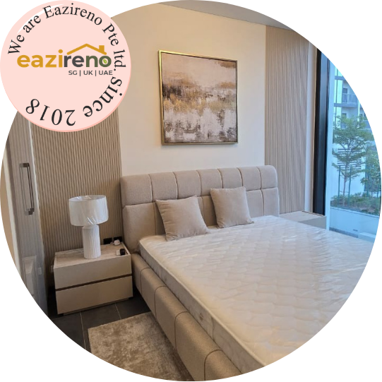 Eazireno specialises in interior finishing and home upgrade services, including TV wall décor, custom curtains, bed wall features, cabinet wrapping, SPC flooring, and artificial grass installation for residential and commercial spaces.